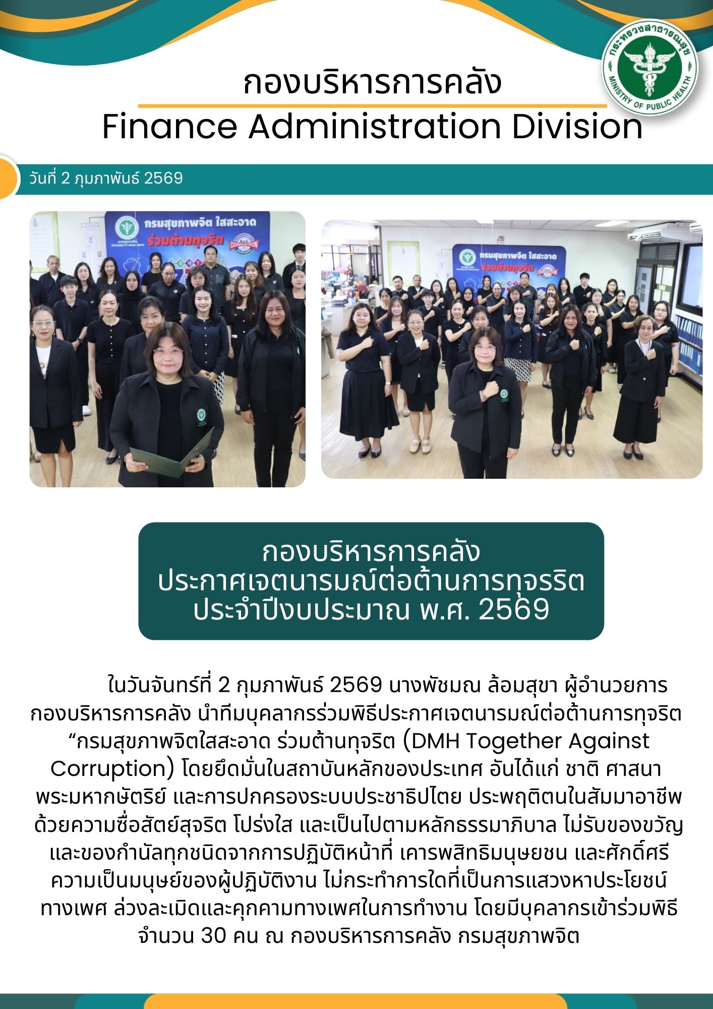 ประกาศเจตนารมณ์ต่อต้านทุจริต ของกองบริหารการคลัง